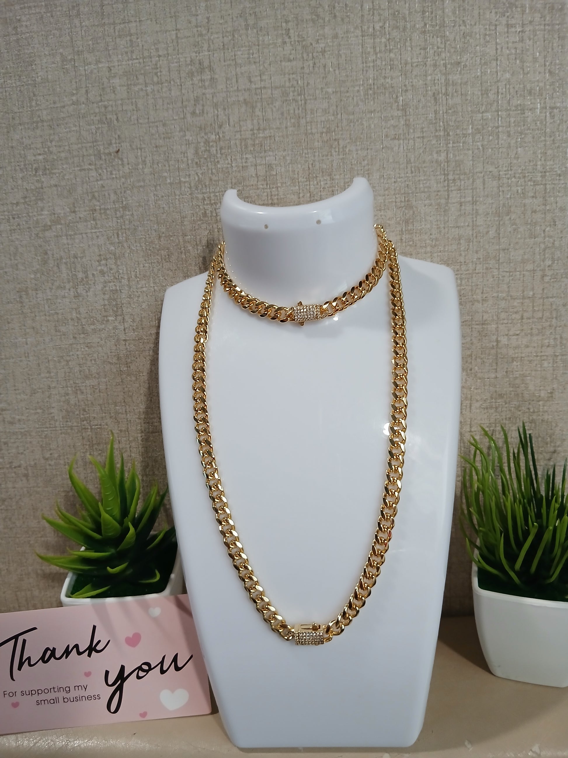 💫 Diseño de lujo en versión delicada. Inspirado en la mundialmente reconocida Mónaco Chain™, este set incluye una cadena y pulsera de eslabones gruesos en oro laminado 14k. Ideal para quienes buscan un estilo elegante, ligero y moderno.